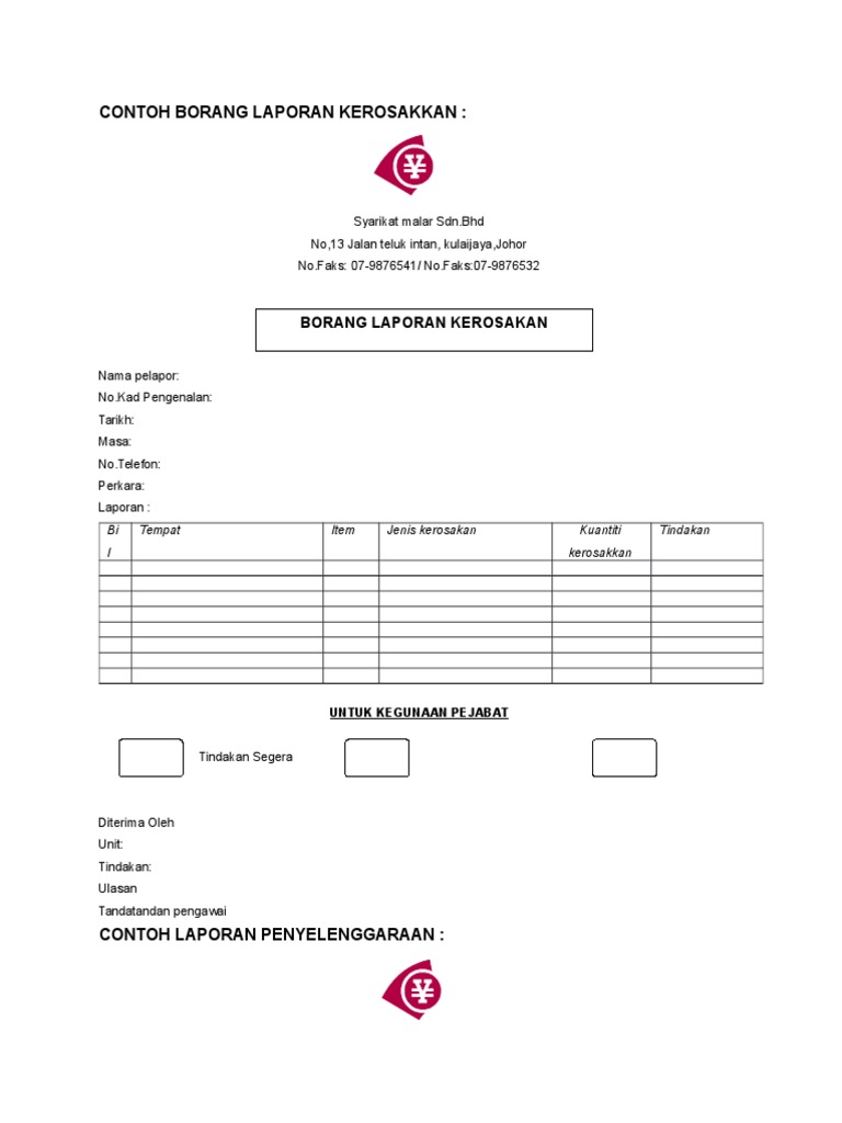 Contoh Borang Laporan Kerosakkan Pdf